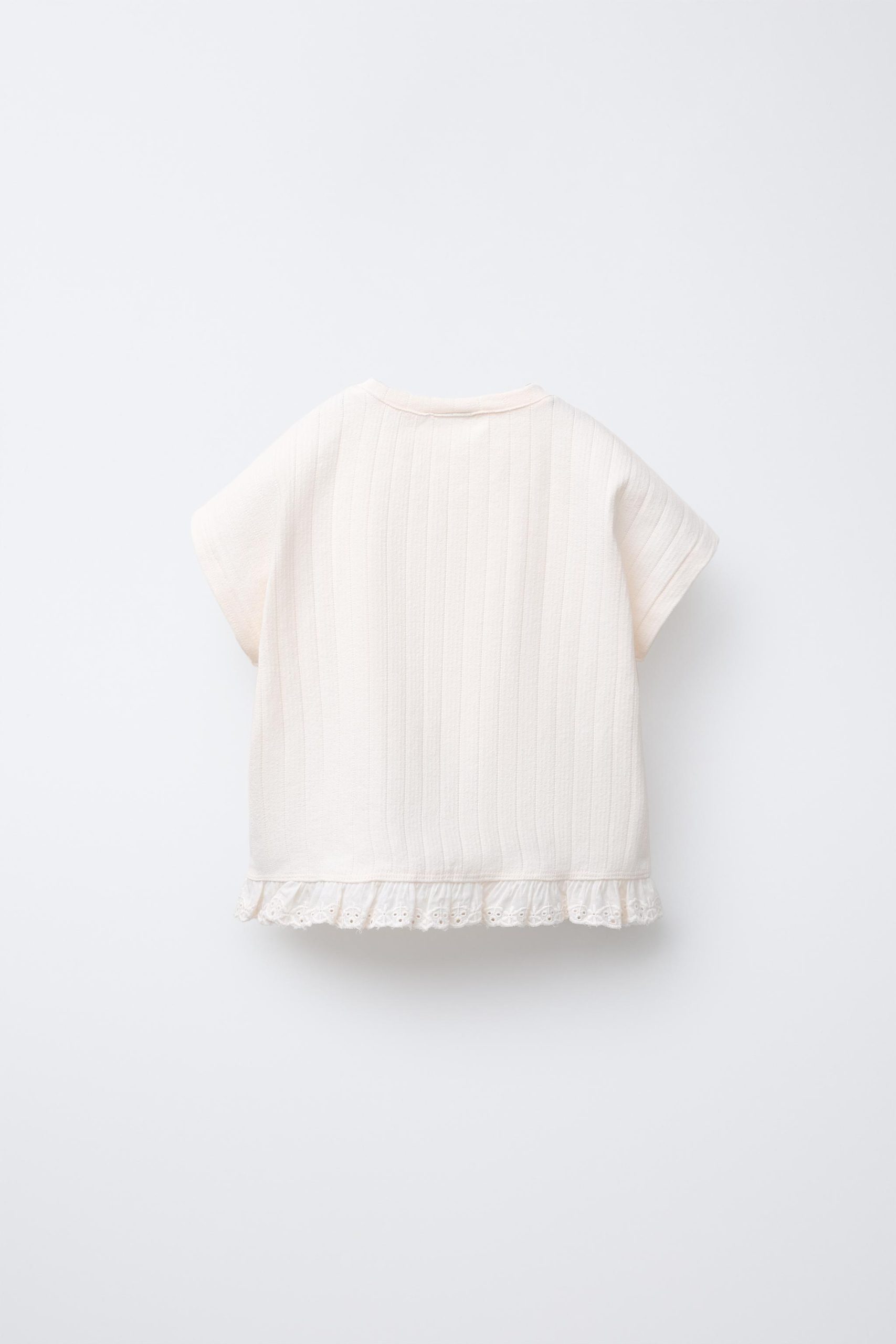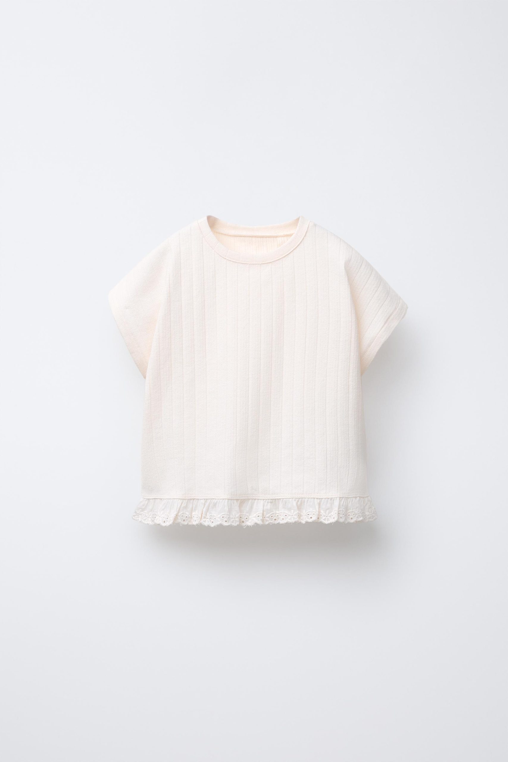 تیشرت یقه دوچرخهای با آستین کوتاه. لبه پایین با دوخت فستو تزئین شده است. پارچه ۹۶٪ پنبهای.