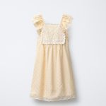 - Düz yakalı ve uçları dantel detaylı askılı elbise. Ön robalı jakarlı kumaş aplikesi. İşlemeli çiçek detaylı. Ucu dantel detaylı. İç astarı uyumlu renkte.