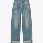 - Orta belli, kemer köprülü jean. Beş cepli. Yıkanmış efektli. Kıvrılmış paçalı. Önden fermuar ve düğme kapamalı.