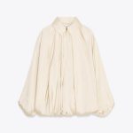 کت جکت بمبری زنانه زارا از الیاف لیوسل. دارای یقه و آستینهای بلند و پفی. قسمت پایین با چینهای برجسته. جلو با زیپ بسته میشود.