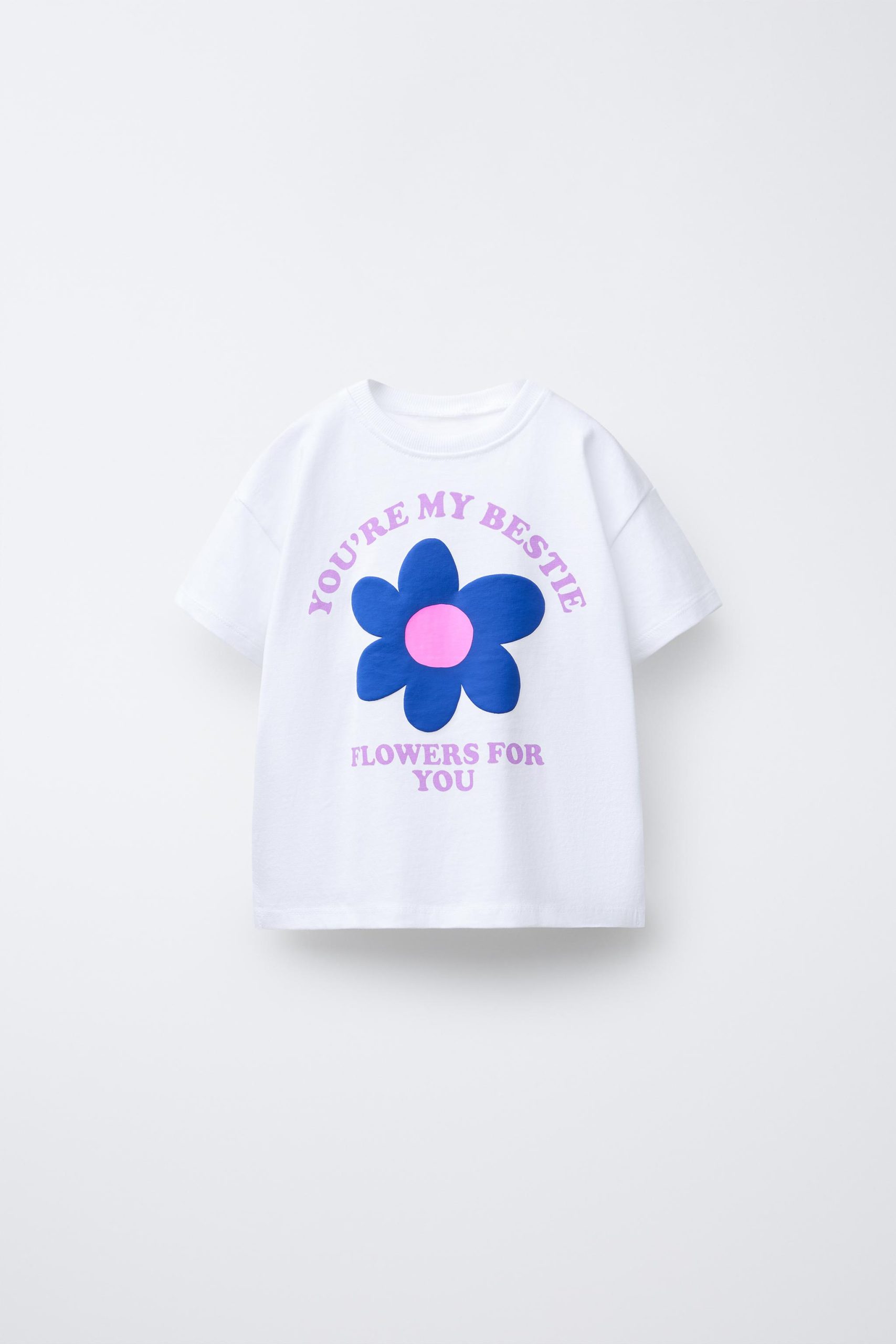 تیشرت یقه گرد و کوتاهمُد، با طرح برجسته در قسمت جلو. از ۱۰۰% پنبه تهیه شده است.