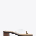 - Topuklu sandalet tipi ayakkabı. Kalın vinil bantlı. Zıt renkli tabanlı. Kalın topuklu. Yuvarlak burunlu.