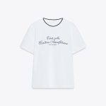 Pamuk iplikten üretilmiş tişört. Kontrast kalın triko uygulamalı bisiklet yaka. Kısa kollu. Ön kısımda yazı detayı.
