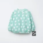 - Bisiklet yaka, uzun kollu sweatshirt. Fitilli. Arkası düğmeli, yırtmaçlı. Tamamı baskılı. %100 pamuklu kumaş.