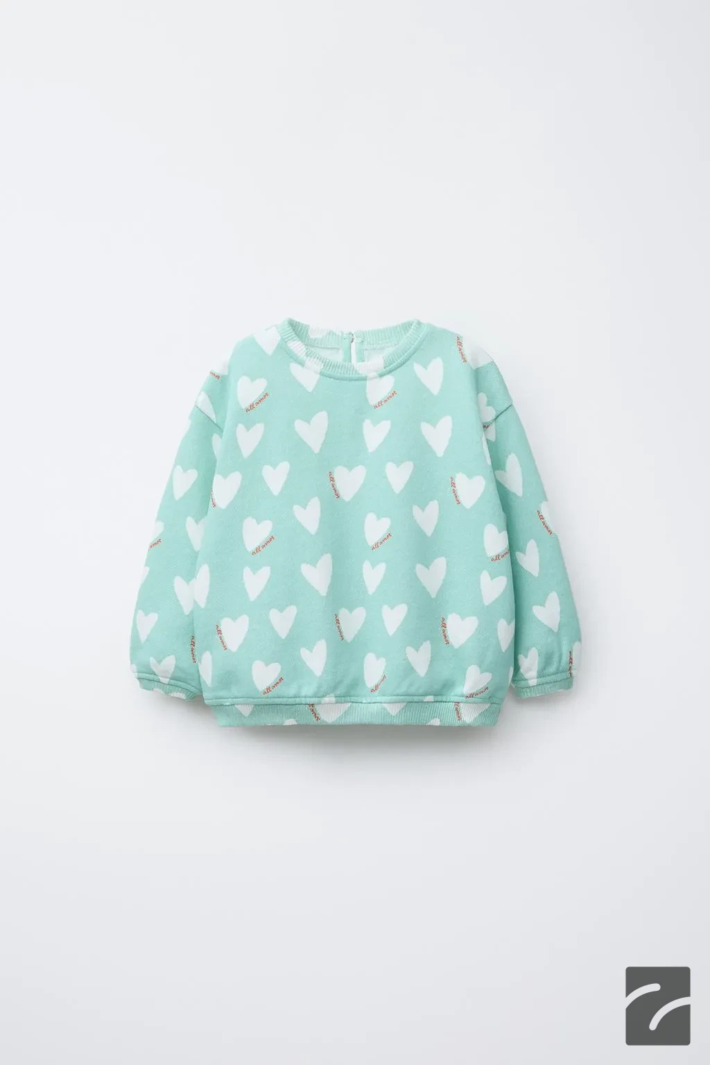 Bisiklet yaka, uzun kollu sweatshirt. Fitilli. Arkası düğmeli, yırtmaçlı. Tamamı baskılı. %100 pamuklu kumaş.