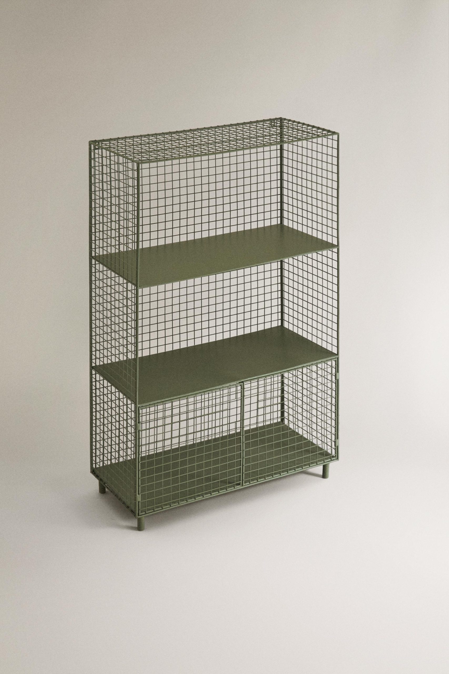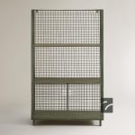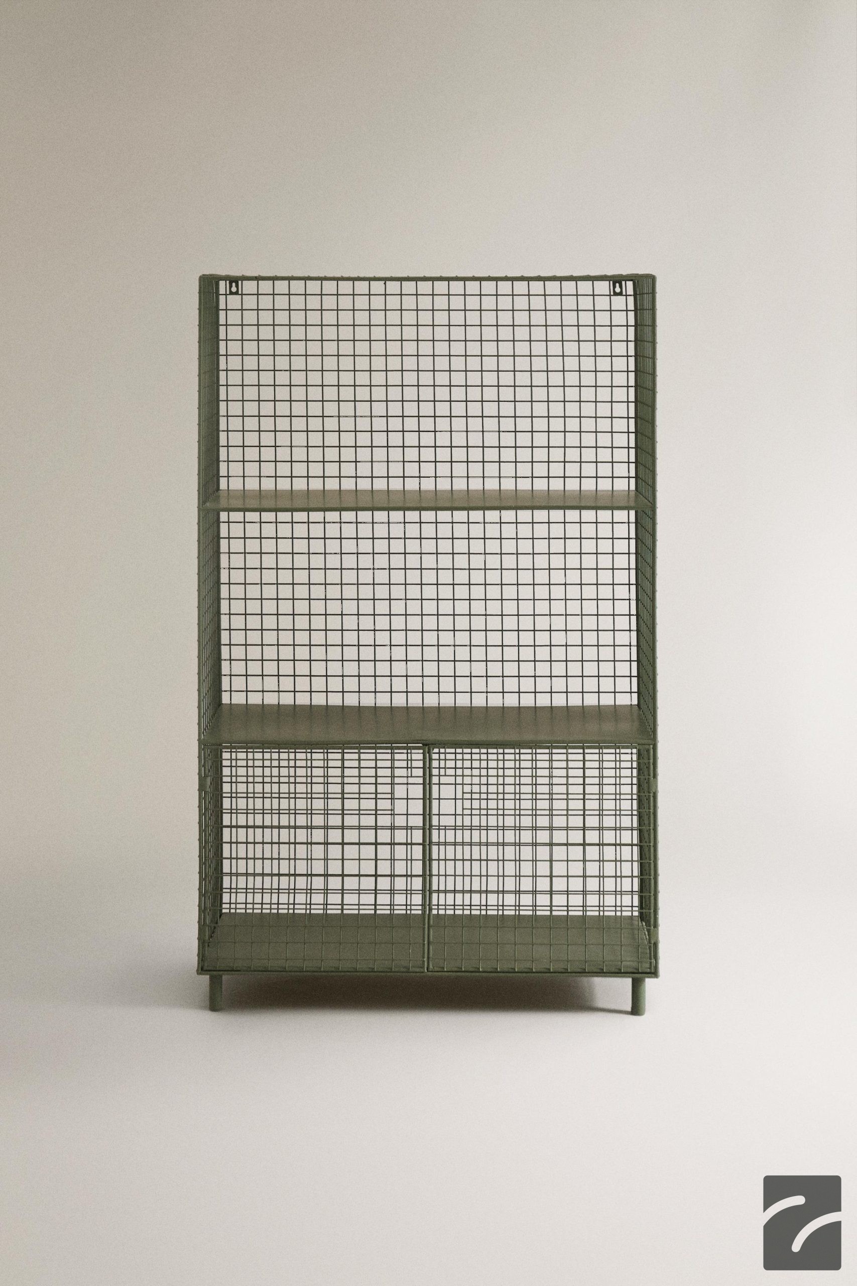 این واحد قفسه فلزی دارای درپوشهای باز و بسته شونده در قسمت پایین و سه قفسه است. در یک طرف آن توری فلزی وجود دارد.