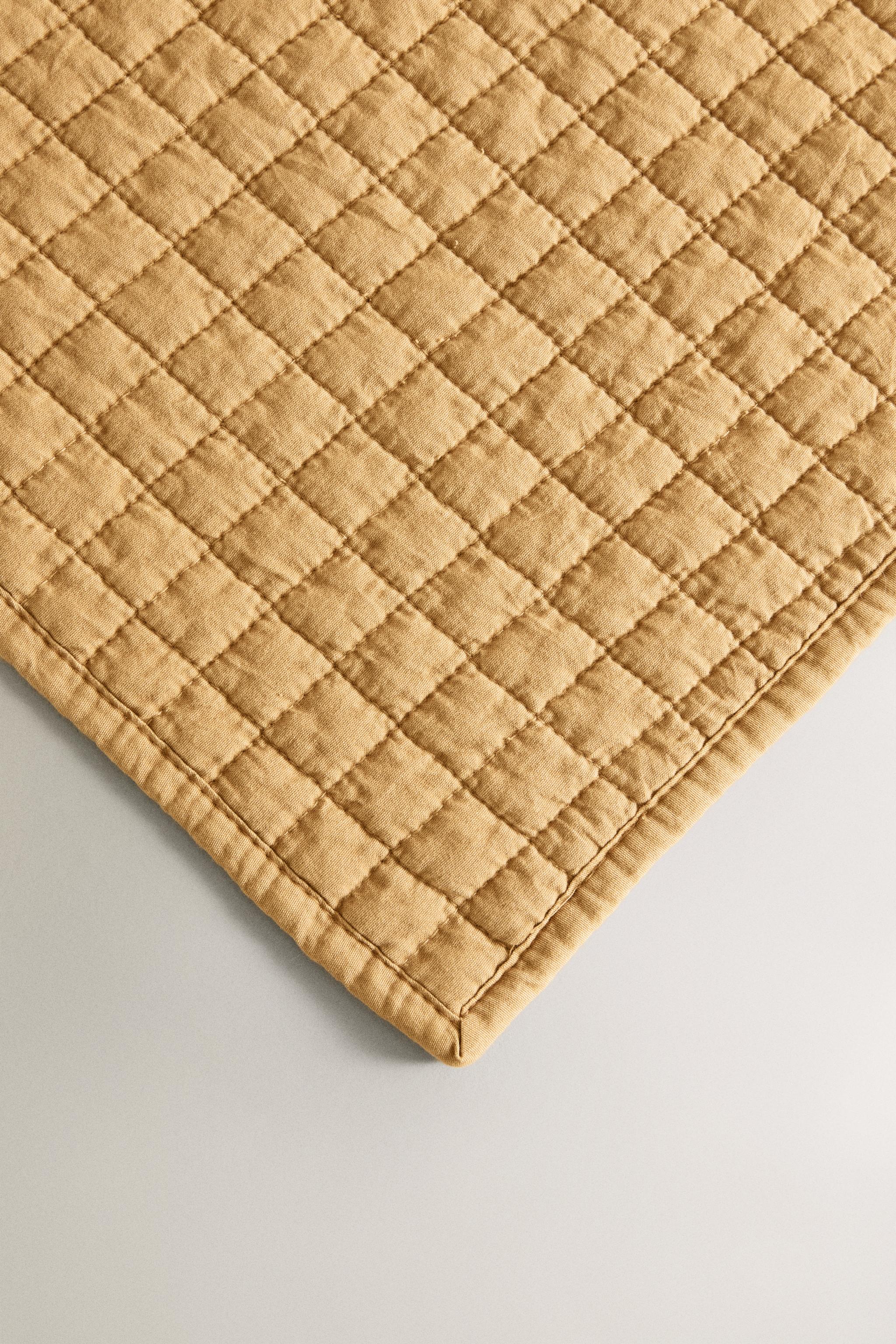 Kare tasarımlı, kapitone mikrofiber dolgulu çocuk yorganı.