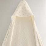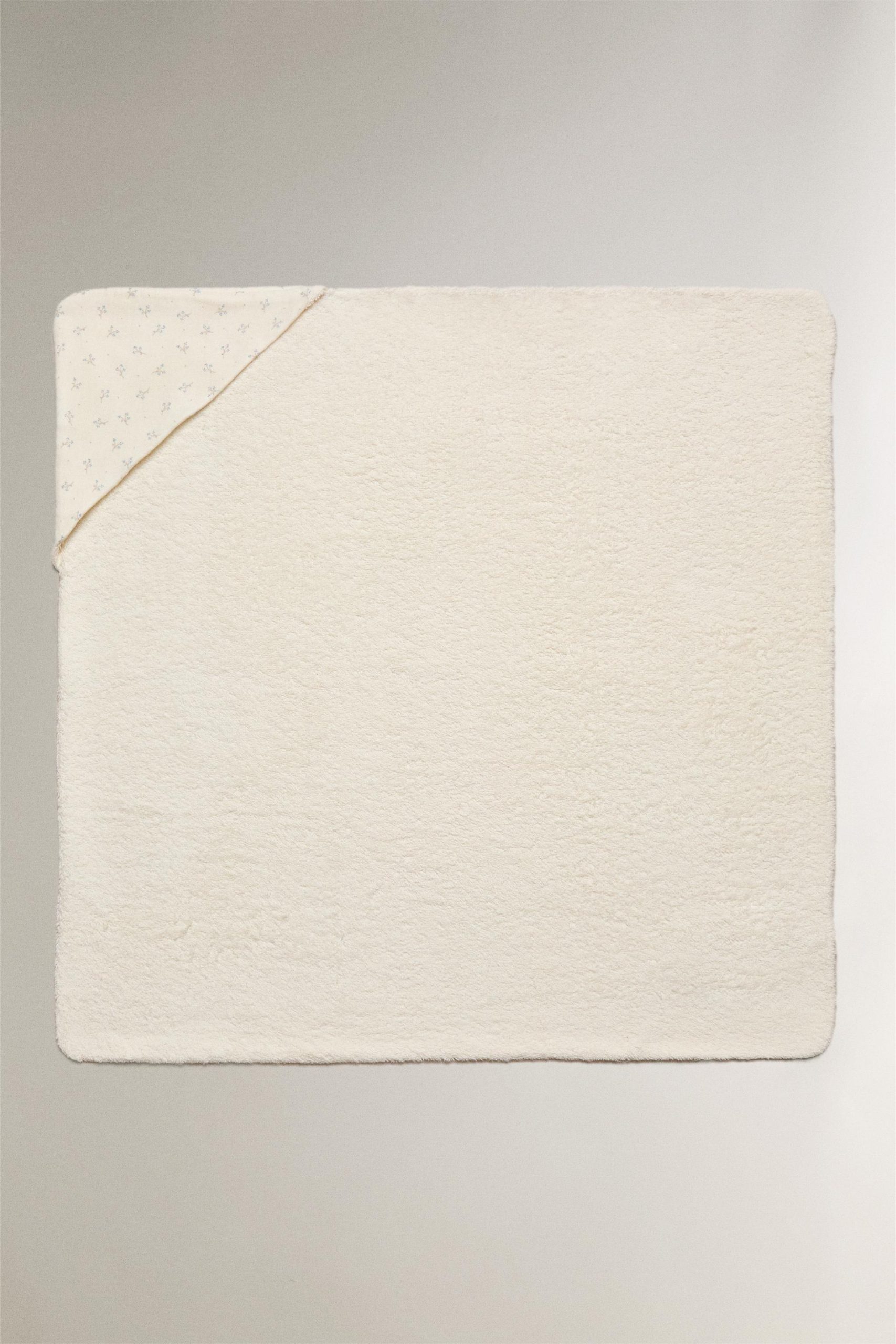 - Pamuklu havlu kumaştan, mini çiçek desenli, kapüşonlu bebek havlusu.