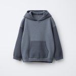 ژاکت بافتنی آستین بلند و کلاهدار. دارای جیب کنگورویی در قسمت جلو.