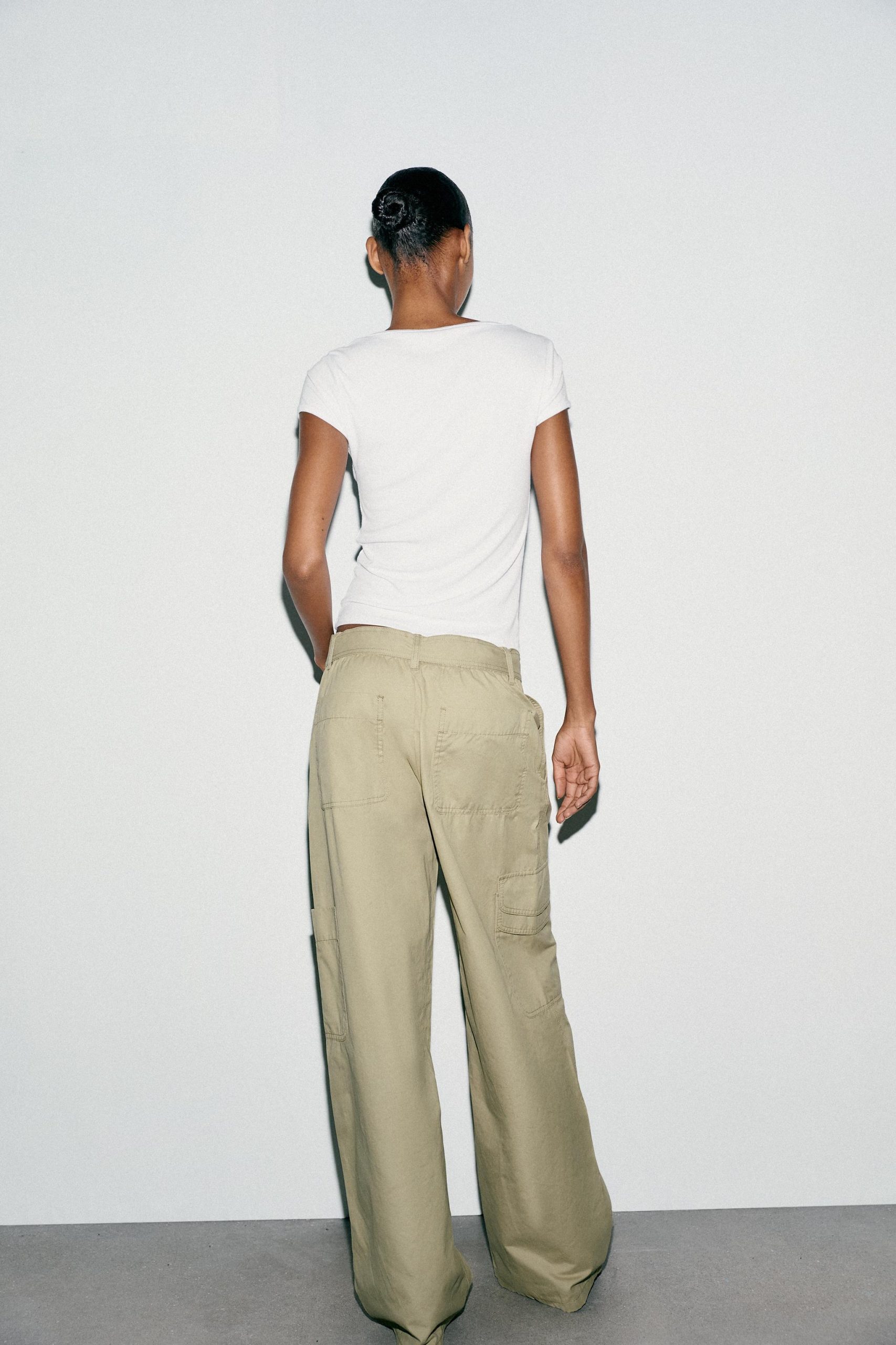 تیشرتی از پارچه ترکیبی ویسکوز. دارای یقه مربع و آستینهای کوتاه.