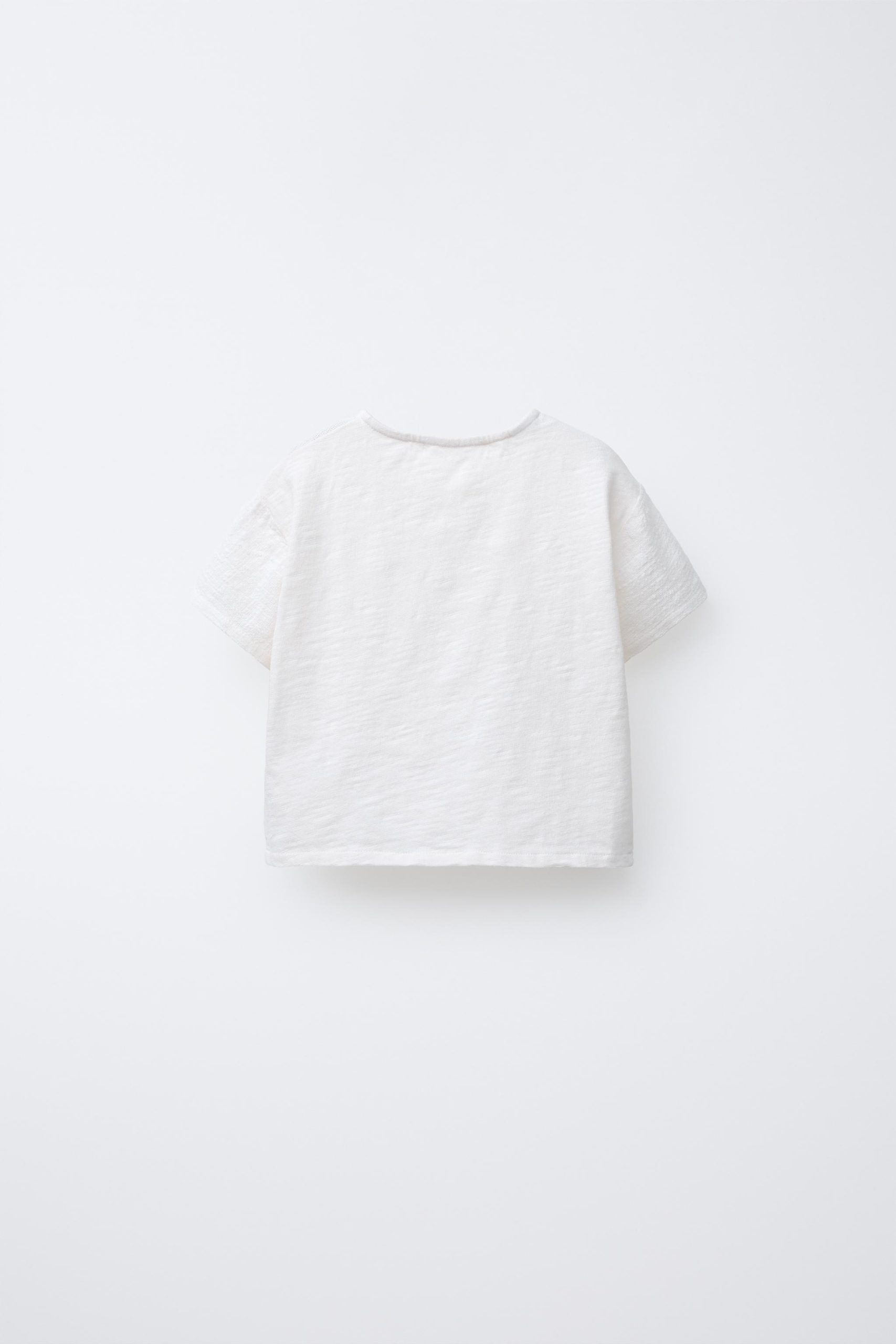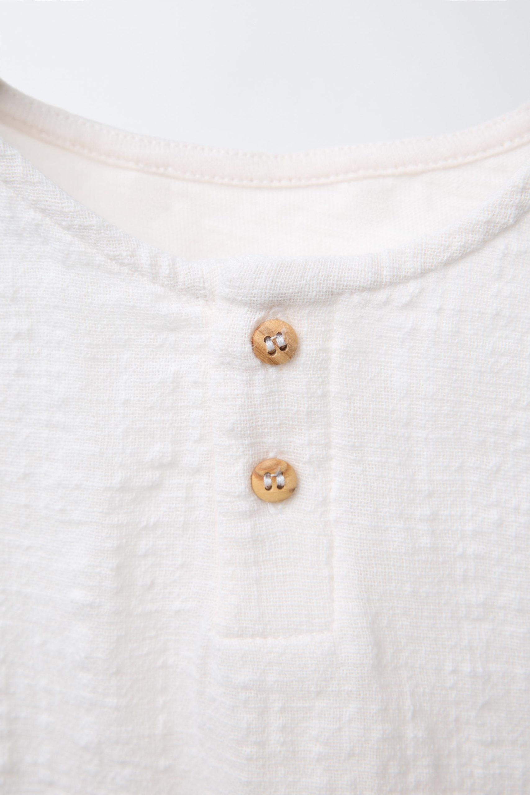تیشرت کوتاهکم با یقه دکمهدار. دارای دکمههای جلو با طراحی روبا. از پارچه ۱۰۰٪ پنبهای ساخته شده است.