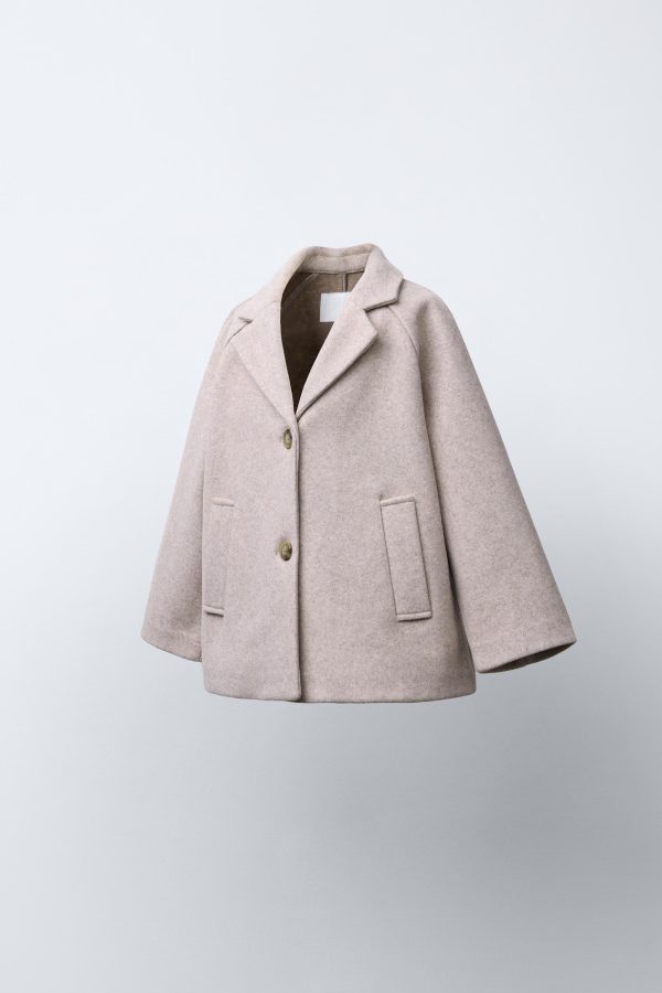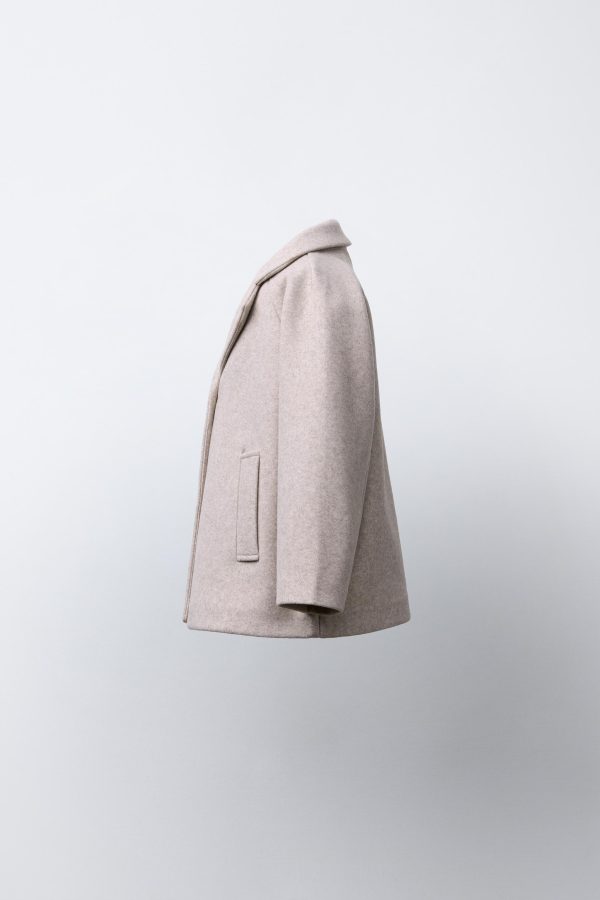 Polo yaka ve uzun kollu kaban. Önü düğme kapamalı. Ön kısımda biyeli detaylı cepler.