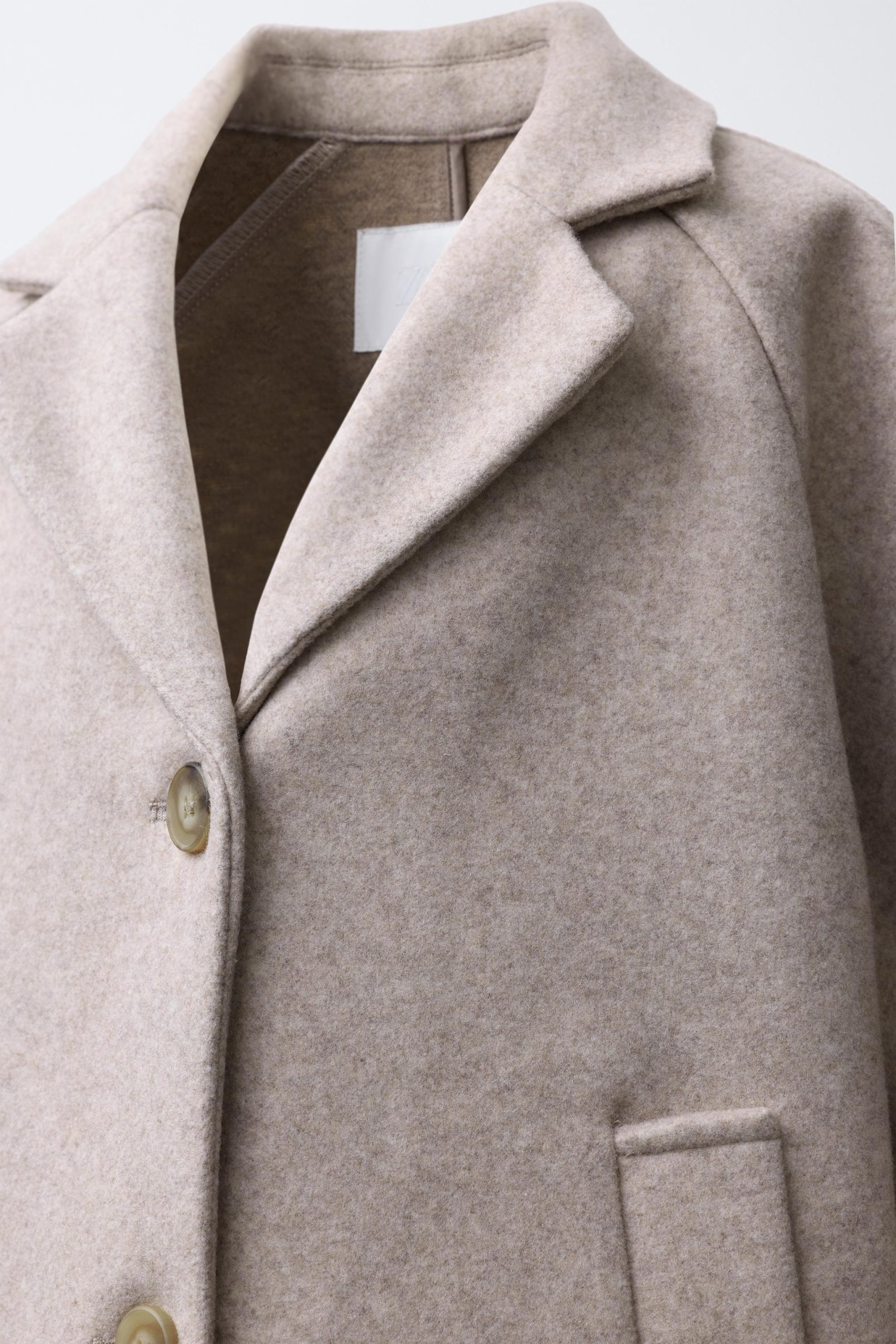 - Polo yaka ve uzun kollu kaban. Önü düğme kapamalı. Ön kısımda biyeli detaylı cepler.