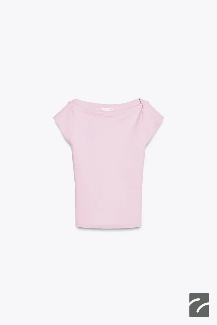 تیشرت فیت لاغر با یقه وسیع از برند زارا (زنانه) - S, صورتی (04424302)