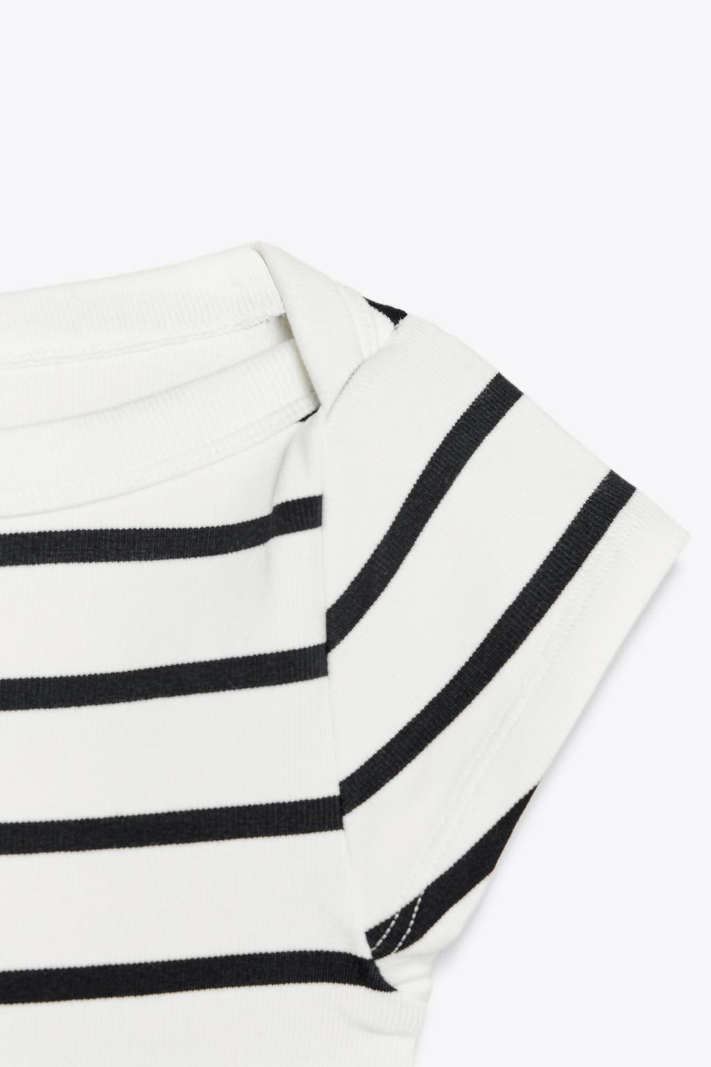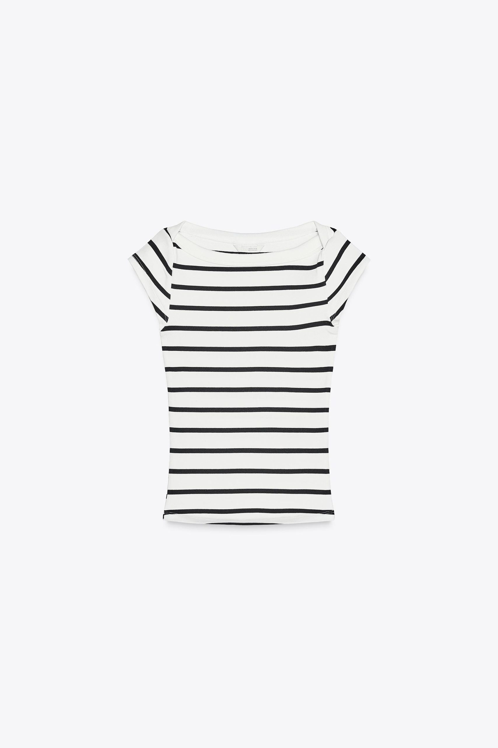 تیشرت فیت لاغر با یقه وسیع از برند زارا (زنانه) - S, راه راه (04424302)