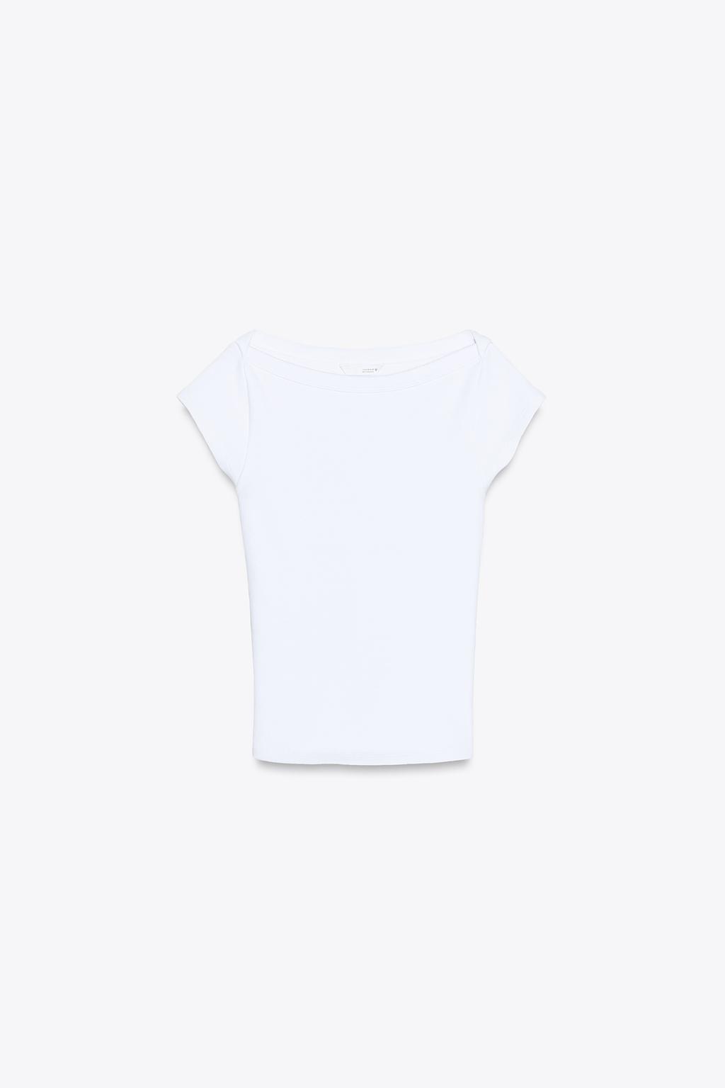 تیشرت فیت لاغر با یقه وسیع از برند زارا (زنانه) - S, سفید (04424302)
