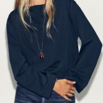 تیشرت آستینبلند با یقه قایقی، ساخته شده از الیاف پنبهای.
