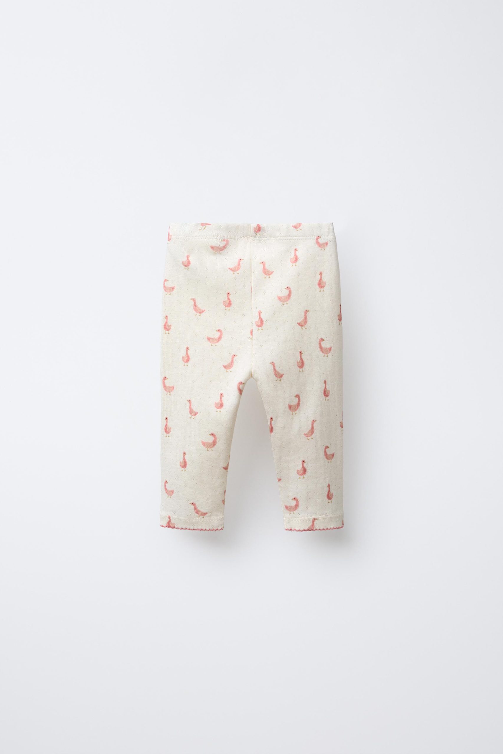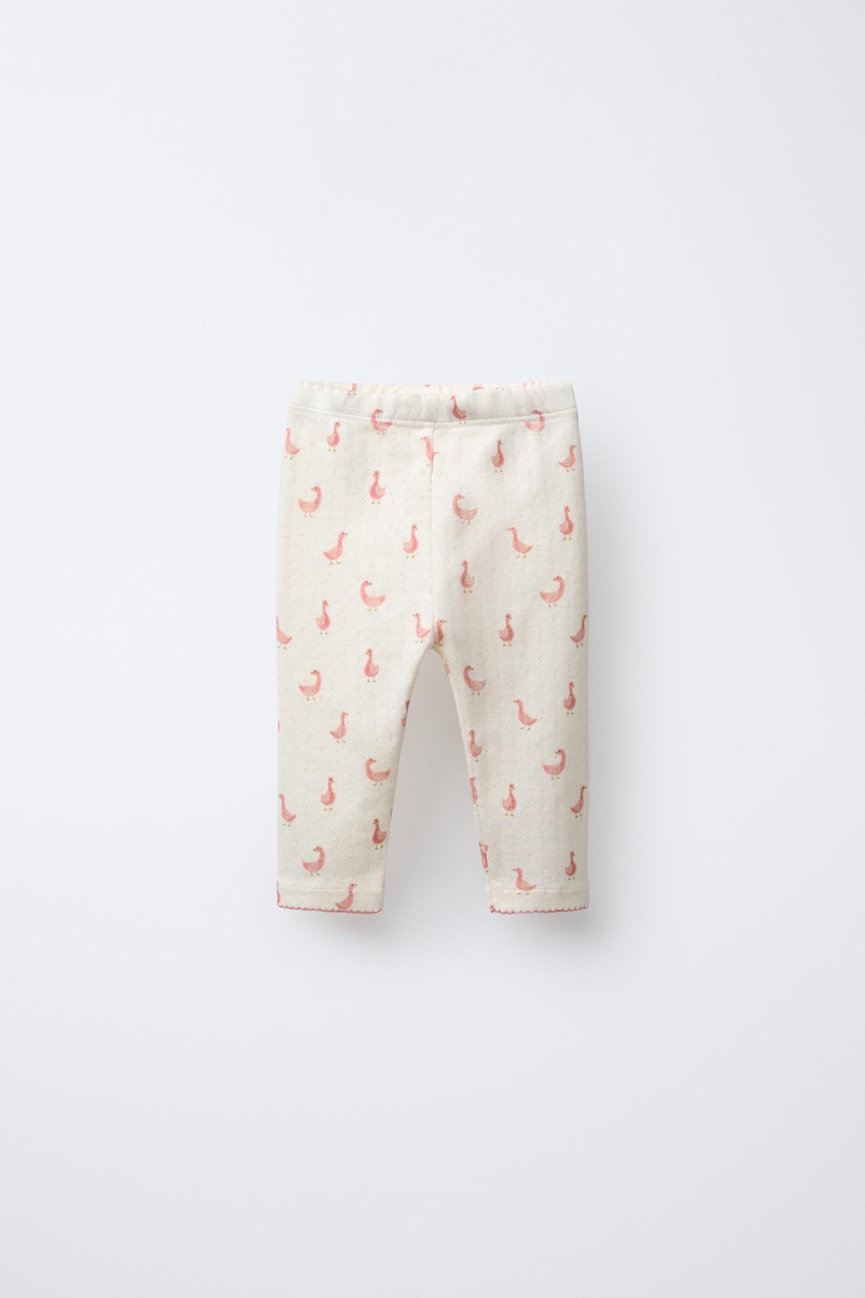 Elastik belli tayt. Kaz tüyü baskılı ve kontrast renkli bitişli paçalı. %100 pamuklu kumaş.