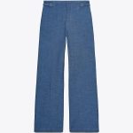 شلوار بلند با کمر برش‌دار و بلندی بالا. دارای جیب‌های جلو و جیب‌های پشتی با دوخت تزئینی. پاچه‌های گشاد. بسته شدن از جلو با زیپ، دکمه داخلی و قفل.