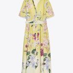 پیراهن یقهدار کوتاهدامن V yaka با جزئیات کمربند همرنگ. بسته شدن از جلو با دکمه.