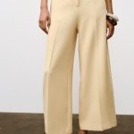 • Kemerli yüksek bel pantolon. Ön cepli ve arkada biyeli, cepli. Geniş ve kısa paçalı. Önü fermuarlı, içten düğmeli ve kancalı kapama.