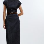 - Bisiklet yaka, kısa kollu elbise. Kemer detaylı. Arkası yırtmaçlı. Arkası dikiş kısmında gizli fermuar kapamalı.