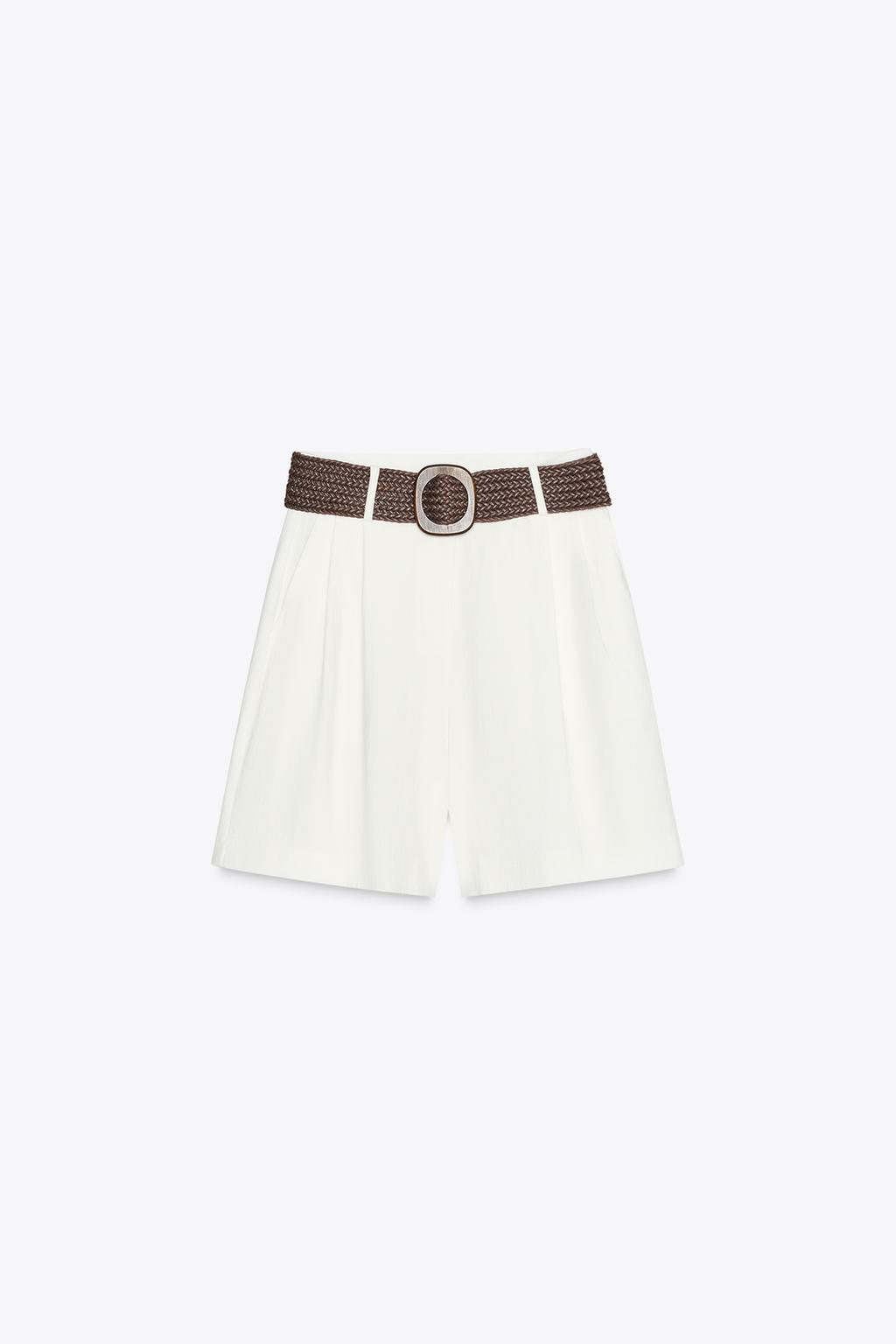برمودای بلند با کمر کشی و جیب از برند زارا (زنانه) - S, سفید (08372444)