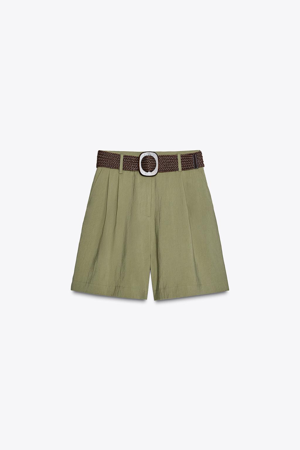 برمودای بلند با کمر کشی و جیب از برند زارا (زنانه) - S, سبز زیتونی (08372444)