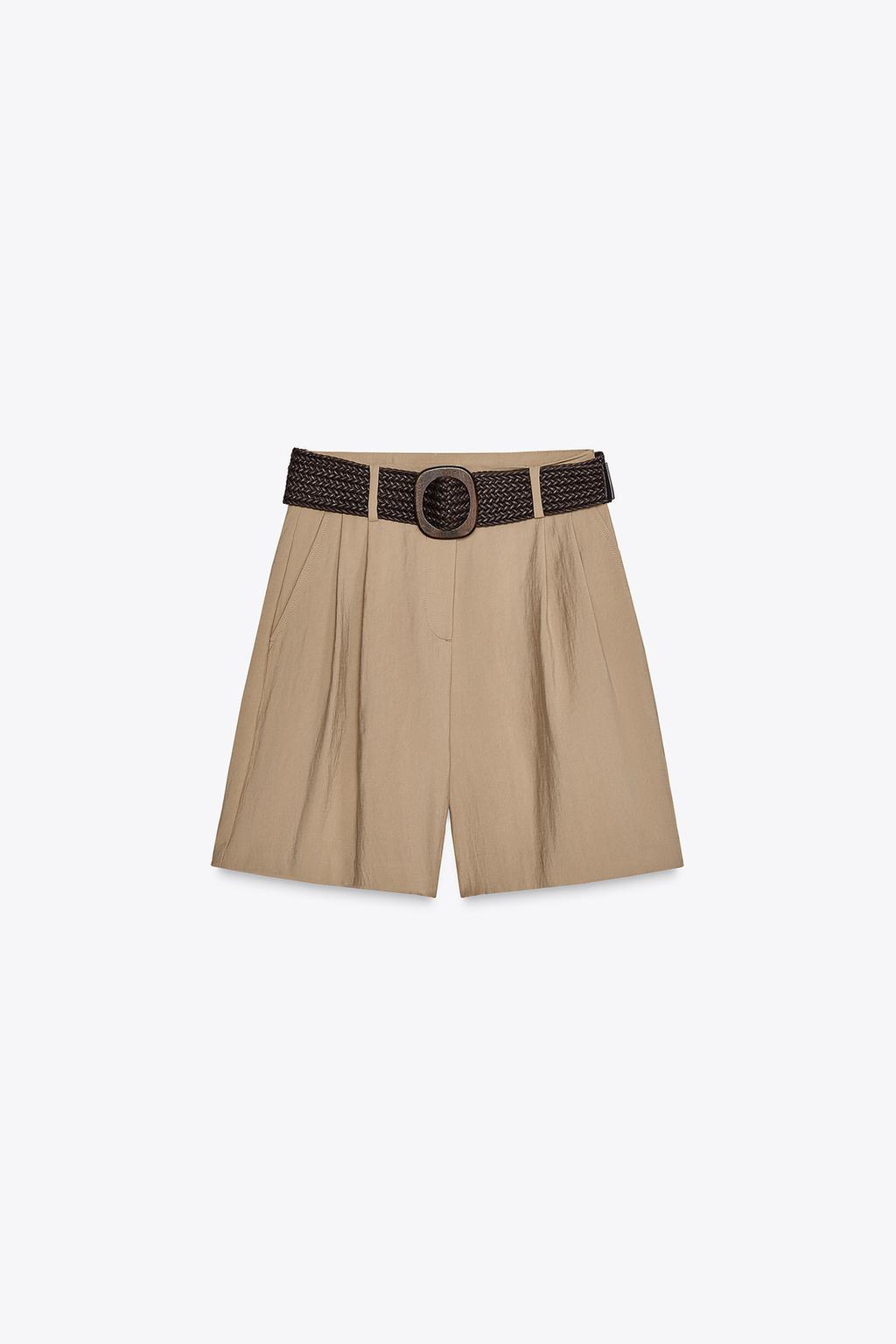 برمودای بلند با کمر کشی و جیب از برند زارا (زنانه) - S, بژ (08372444)