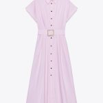 پیراهن یقهدار و کوتاهکُل. جلوهای با چین و بند، دارای جزئیات کمربند همرنگ. بسته شدن از جلو با دکمه.