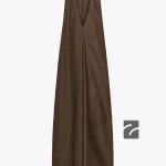 این میدیدریس از الیاف مخلوط کتان تولید شده است. دارای یقه V و بدون آستین است. نوارهای رنگی متضاد و لبه دامن صاف دارد.