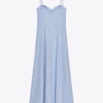 لباسی از پارچه کتان. دارای یقهای با طراحی کمر بند و بُرگهای بُرگدار در داخل. بندهای نازک قابل تنظیم. دامن به شکل A و دارای یقه جلو. پشت لباس با زیپ مخفی دوخته شده است.