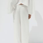 شلوار تولید شده از پارچه کتان. با قد متوسط و دارای حلقه کمربند. دارای بند و کمر الاستیک قابل تنظیم. دارای جیب‌های جانبی. قسمت جلو با جزئیات دوخت.