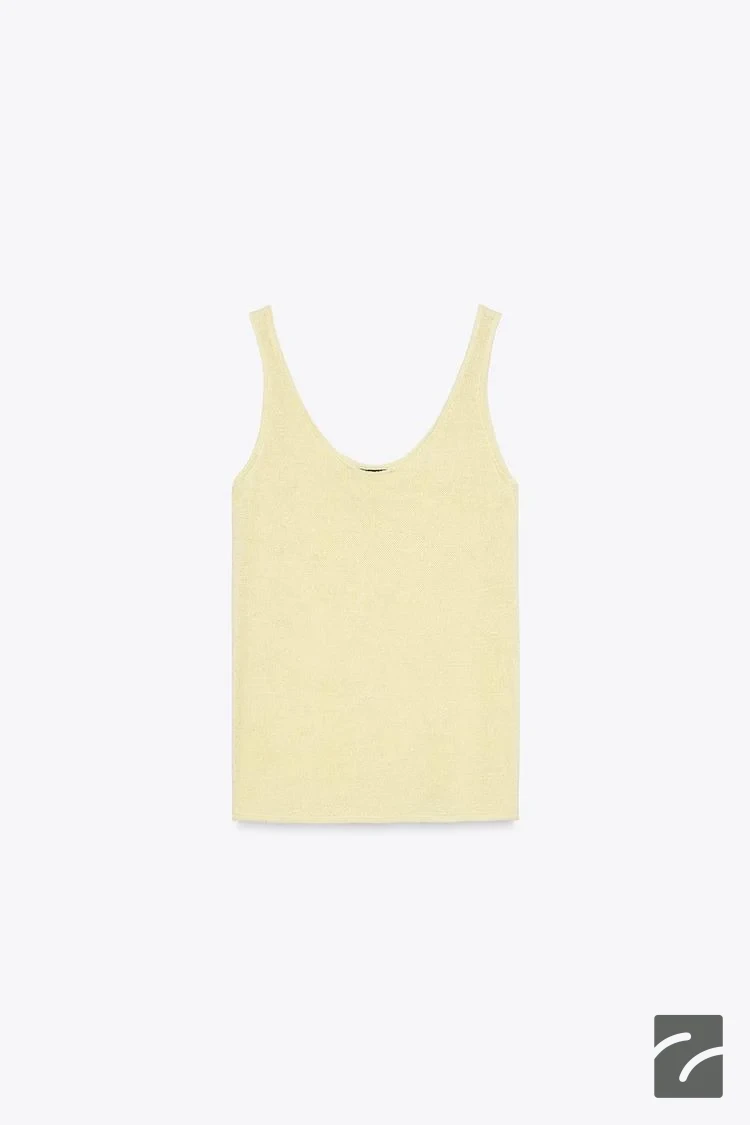 تاپ کتان یقه گرد با بند نازک از برند زارا (زنانه) - XS, زرد روشن (03920251)