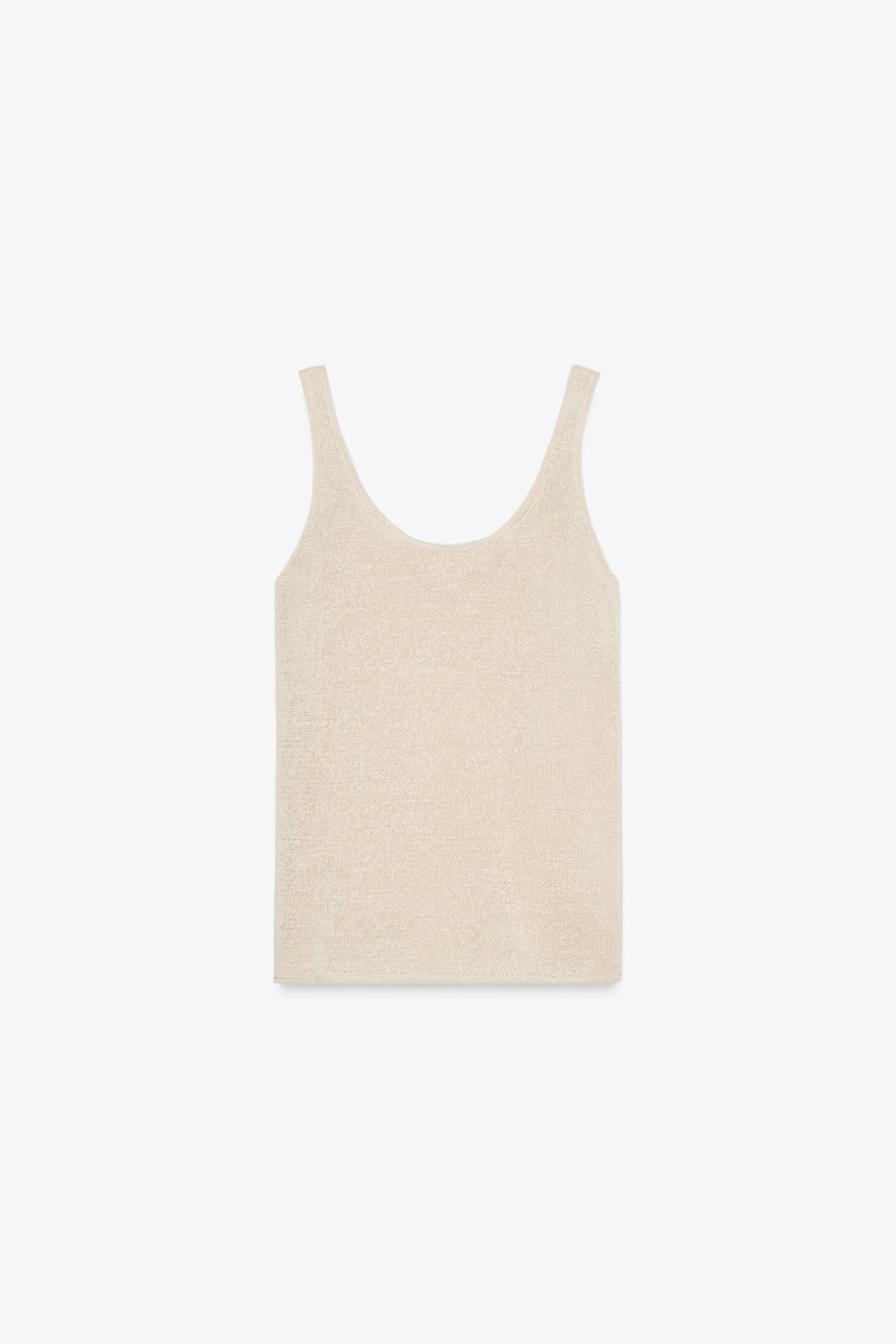 تاپ کتان یقه گرد با بند نازک از برند زارا (زنانه) - S, کرم (03920251)