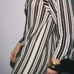 پیراهنی از پارچه کتان با یقه V شکل و آستینهای بلند. پایین دامن دارای یقههای کناری است.