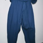 Pamuk ve keten iplikten üretilmiş pantolon. Orta yükseklikte ve bağcıklı ayarlanabilir elastik bel. Dikiş içinde gizli yan cepler.