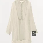 این پیراهن از نخ کتان تولید شده است. دارای یقه و مچ کلاسیک با آستینهای بلند است. پارچه آن دارای جزئیات بافت چروک است. پایین پیراهن به صورت نامتقارن برش خورده و دارای یراق در کنارهها است. بسته شدن آن از جلو با دکمه انجام میشود.