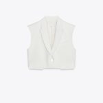 یقهدار و واتکالی، یقهسوزنی بدون آستین پالتو. دارای جزئیات در جلوی کاپشن و بسته شدن با یک دکمه در جلو.