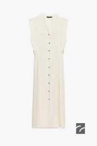 کت جکیت کوتاه آستینکوتاه دکمهدار از برند زارا (زنانه) - M, شیری (06427053)