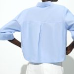 Kısa, kruvaze yakalı ve dirsek altında biten geniş, kıvrımlı kollu gömlek. Ön pat detaylı. Önden düğme kapamalı.