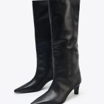 - Deri bot tipi ayakkabı. Gövde kısmında dikiş detaylı. Yüksek bilekli. Pull on ile kolayca giyilebilir. Kısa sivri topuklu. Sivri burunlu.