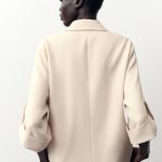 Katlı yakalı ve şerit ve düğme detaylı, kıvrılmış kollu blazer. Ön kısımda biyeli cepler. Önden kruvaze düğme kapamalı.