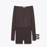 - Yuvarlak yakalı, ince askılı kısa tulum. Üzerinde yuvarlak yakalı ve miten tarzı biten uzun kollu tül kombine üst.