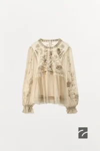 پیراهن بلند یقه حلقهای. دارای جزئیات با ترکیب پارچه هماهنگ. با پشت باز. یقه با دکمههای مخفی بسته میشود.