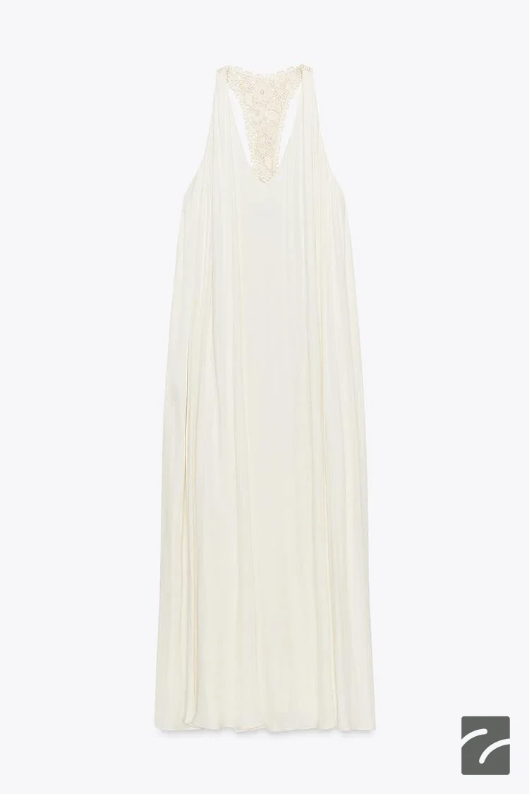 - V yaka uzun elbise. Sırtta tığ işi kombine kumaş detayı. İç astarı.