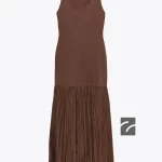 پیراهن بدون آستین و یقهدار با جزئیات پارچهای هماهنگ در انتهای دامن.