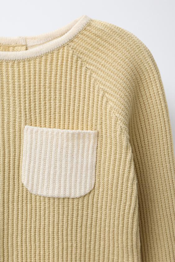ژاکت یقه گرد آستین بلند با جیب سینه از برند زارا (بچه گانه)