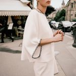 بلوز با یقه گشاد و آستینهای زیر آرنج. دارای جزئیات تزئینی با کنتراست.