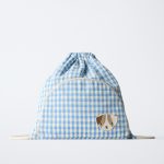 • Köpek işlemeli bucket çanta. Ayarlanabilir büzgü ipli ana bölmeli ve